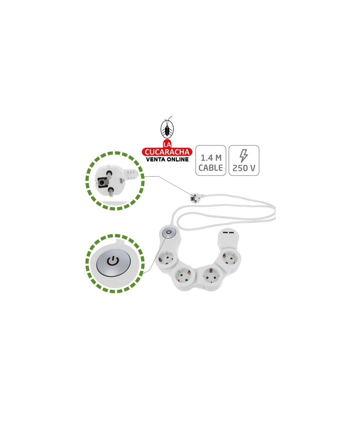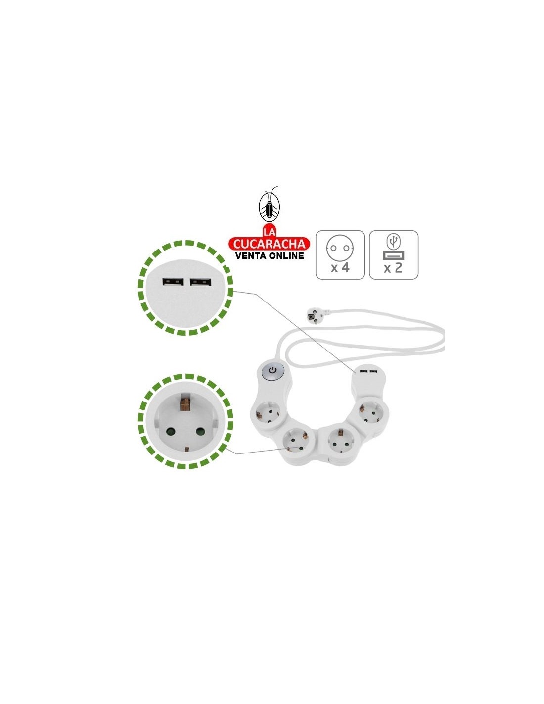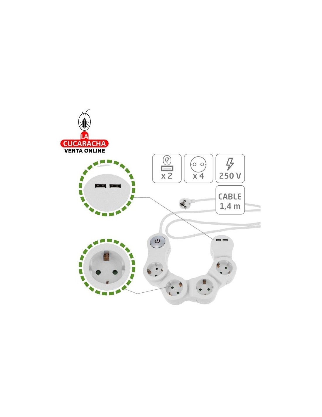 BASE 4 ENCHUFES SCHUKO T.T. INTERRUPTOR 2 TOMAS USB MODELO 5530.
