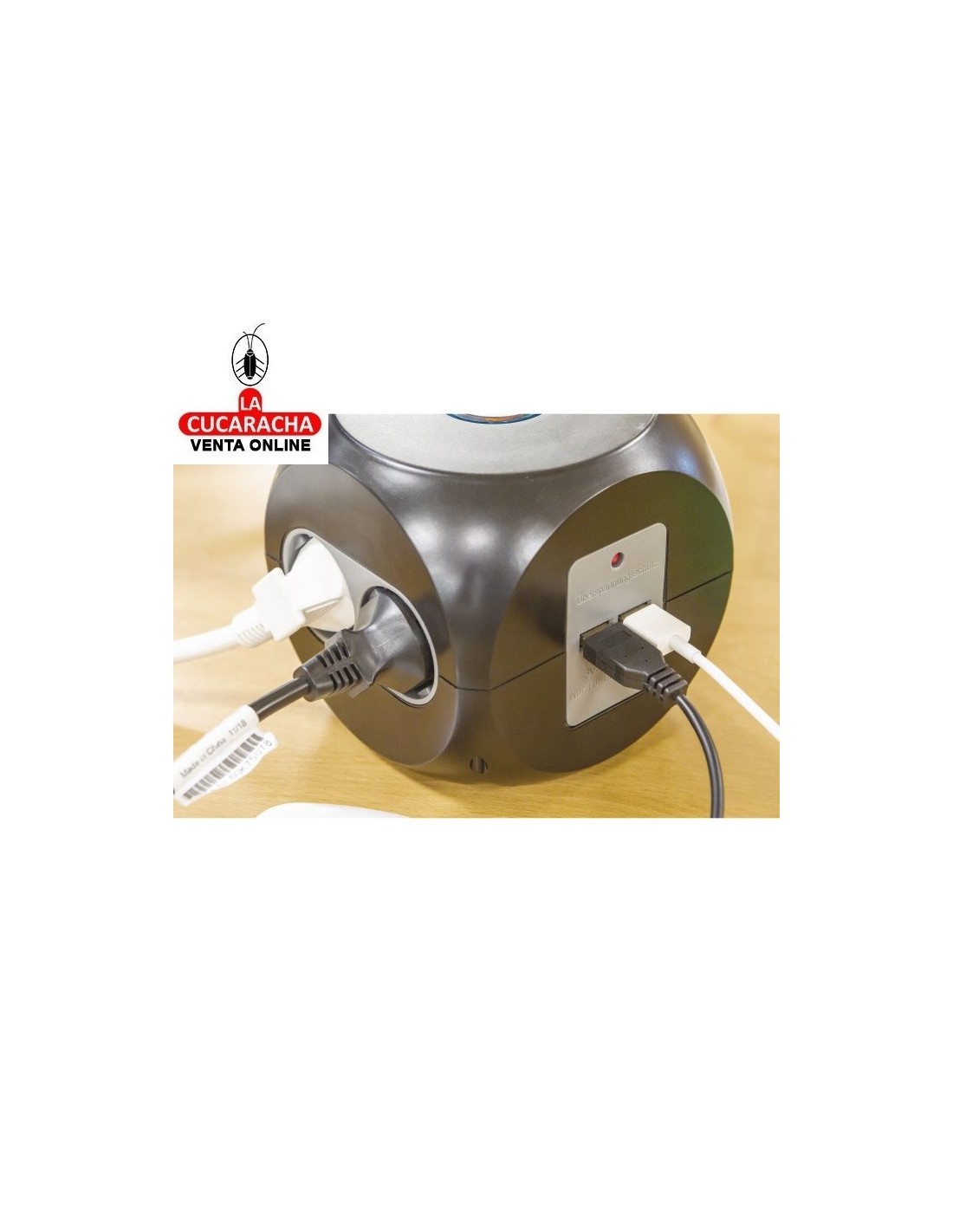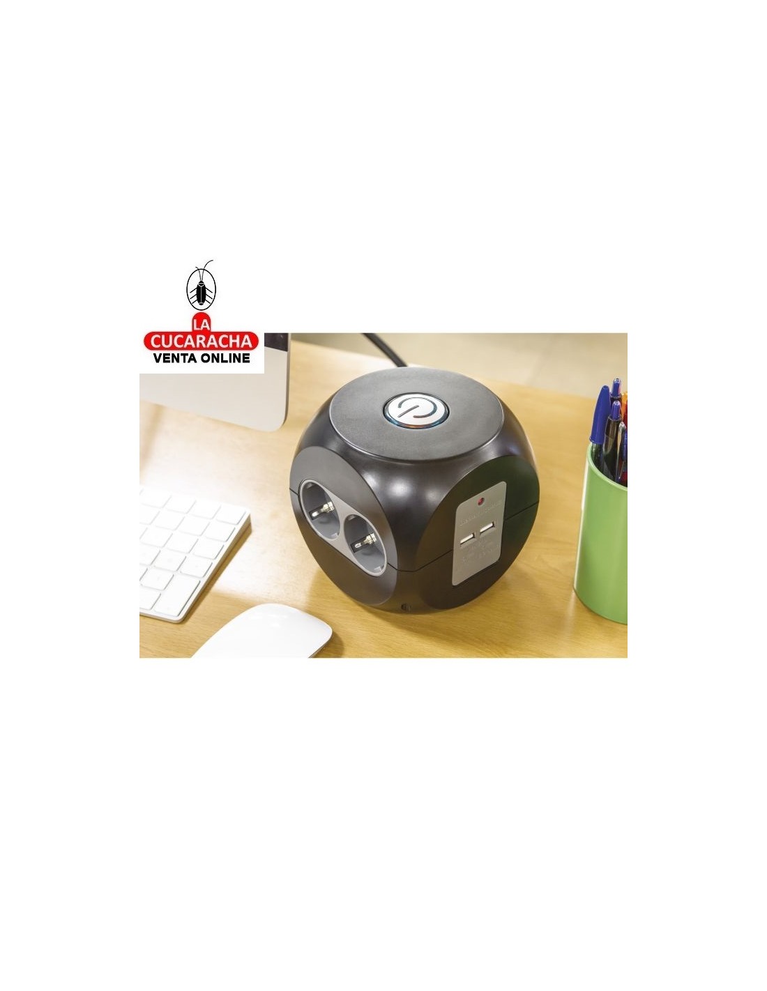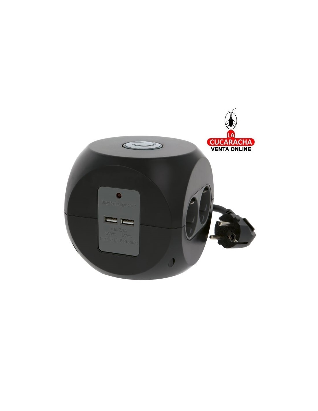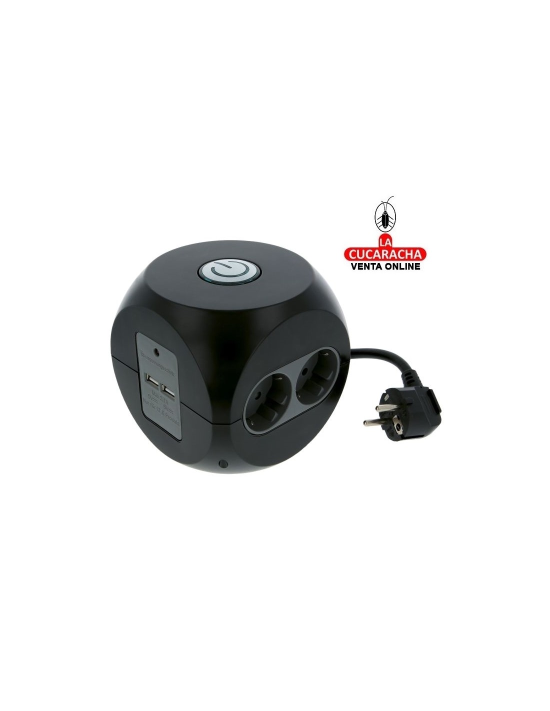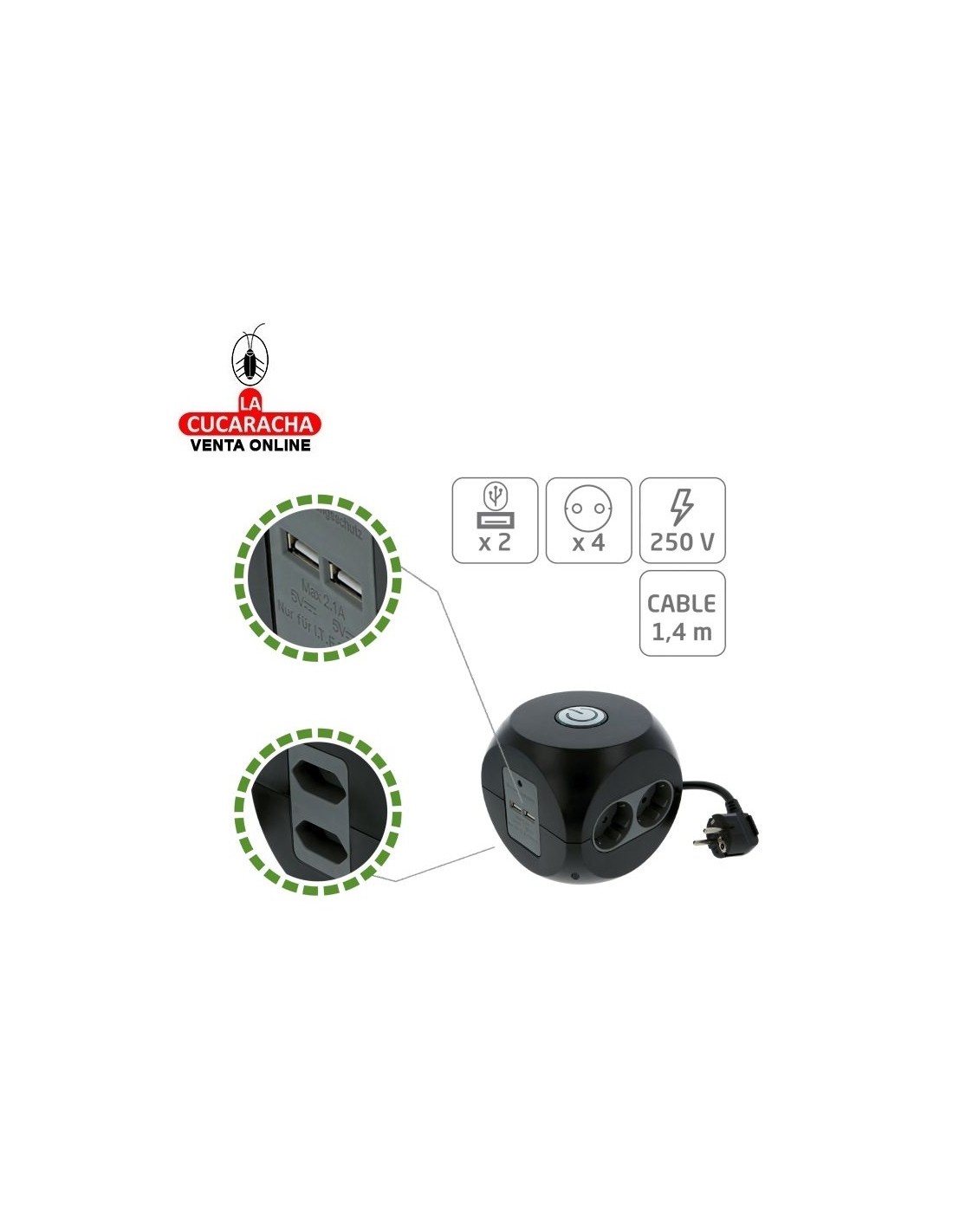 DESCRIPCIÓN: Base múltiple de sobremesa con interruptor, 4 bases Schuko con toma de tierra, más 2 bases sin toma de tierra. Con 2 tomas USB 2,1 A. Cable 3G1,5 mm de 1,4 metros. Amperaje máximo: 16A. Potencia máxima 3680 W. Voltaje máximo: 250V. Cable de alimentación de alta resistencia y durabilidad, con enchufe en el extremo para obtener un alcance óptimo. DETALLES: Fabricado en polipropileno acabado en color negro, un material de buena resistencia y estabilidad térmica. Medidas: 12 x 12 x 12 cm. Este producto cuenta con protección frente a subidas de tensión. USOS: Perfecto para uso en viviendas, oficinas o cualquier otro tipo de establecimiento para poder utilizar al mismo tiempo varios electrodomésticos, cargadores, ordenadores, impresoras, lámparas…en un solo lugar. MATERIALES DE CALIDAD: Material duradero para asegurar su resistencia al calor. Gracias a su circuito de cobre, admite el uso de productos de potencia hasta los 3680W, una gama más amplia de aplicaciones.