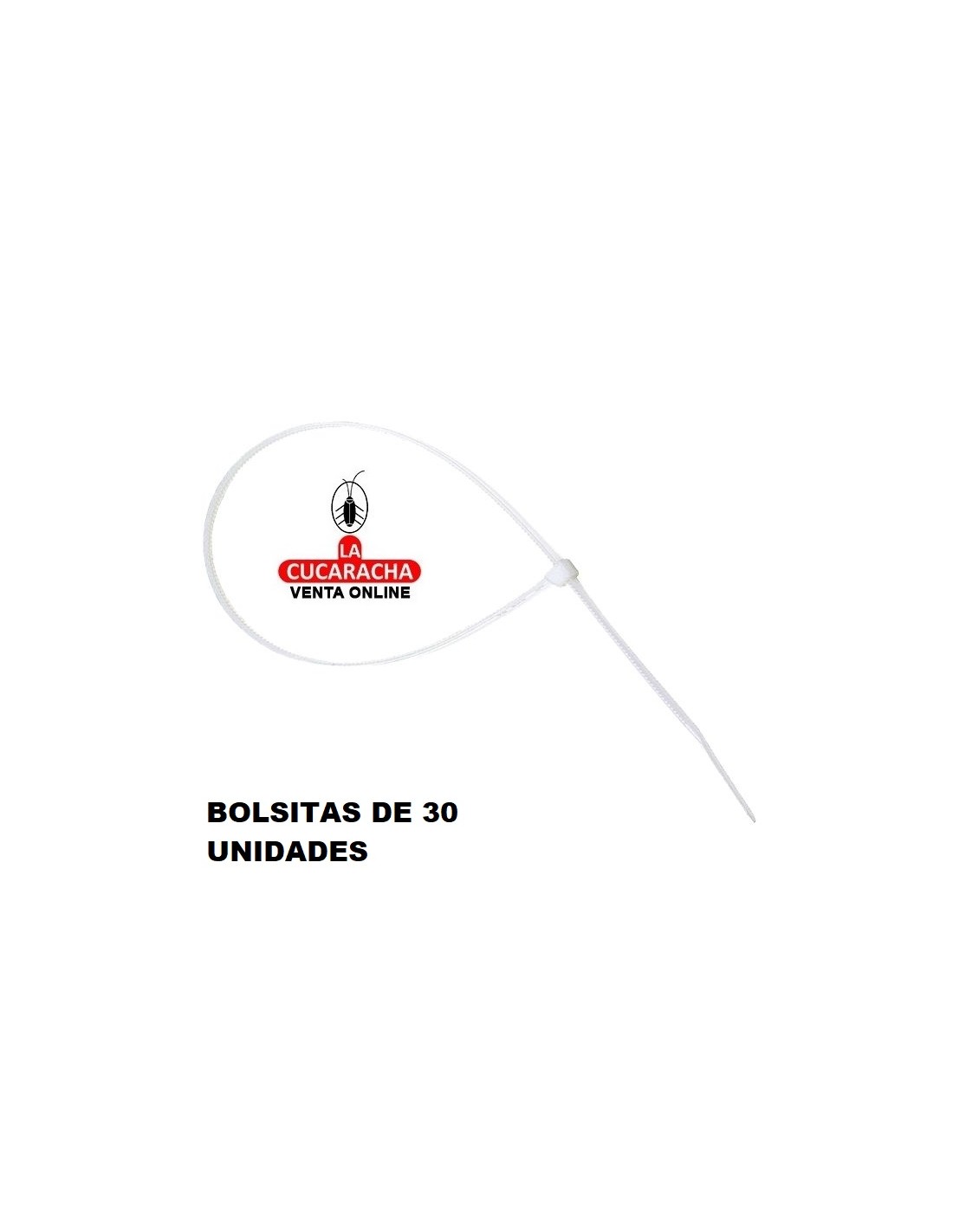 Brida de poliamida PA 6,6. Bridas con dentado para una fuerte sujeción. Alta resistencia a la tracción. Bolsas de 30 bridas.