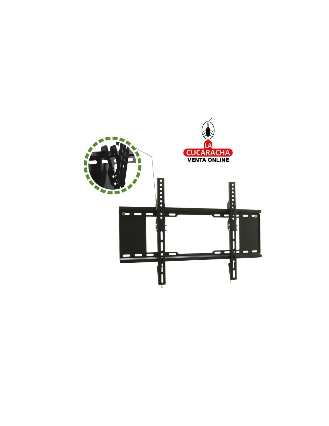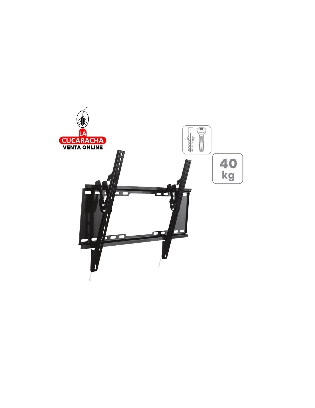 CARACTERÍSTICAS: Soporte de Acero negro para TV de 26 a 65 pulgadas. Máxima estabilidad, diseñado para ahorrar espacio. Este gran soporte de pared para TV cuenta con una artesanía fantástica y es compatible con la mayoría de marcas de televisores del mercado. Se puede montar en una pared de ladrillo o de hormigón (NO montar solo en yeso). DETALLES: Peso máximo: 40 kg. Con función de inclinación. Más seguro y robusto que la mayoría de los soportes del mercado. USOS: Cambie de posición con facilidad. Reduzca o elimine el resplandor de la pantalla modificando la inclinación de un toque y mejore el ángulo de visión desde cualquier lugar del espacio. FÁCIL DE INSTALAR: Incluso si no tienes experiencia en bricolaje, no tendrás ningún problema con su colocación en cualquier pared. Incluye los tornillos y tacos necesarios para su anclaje.